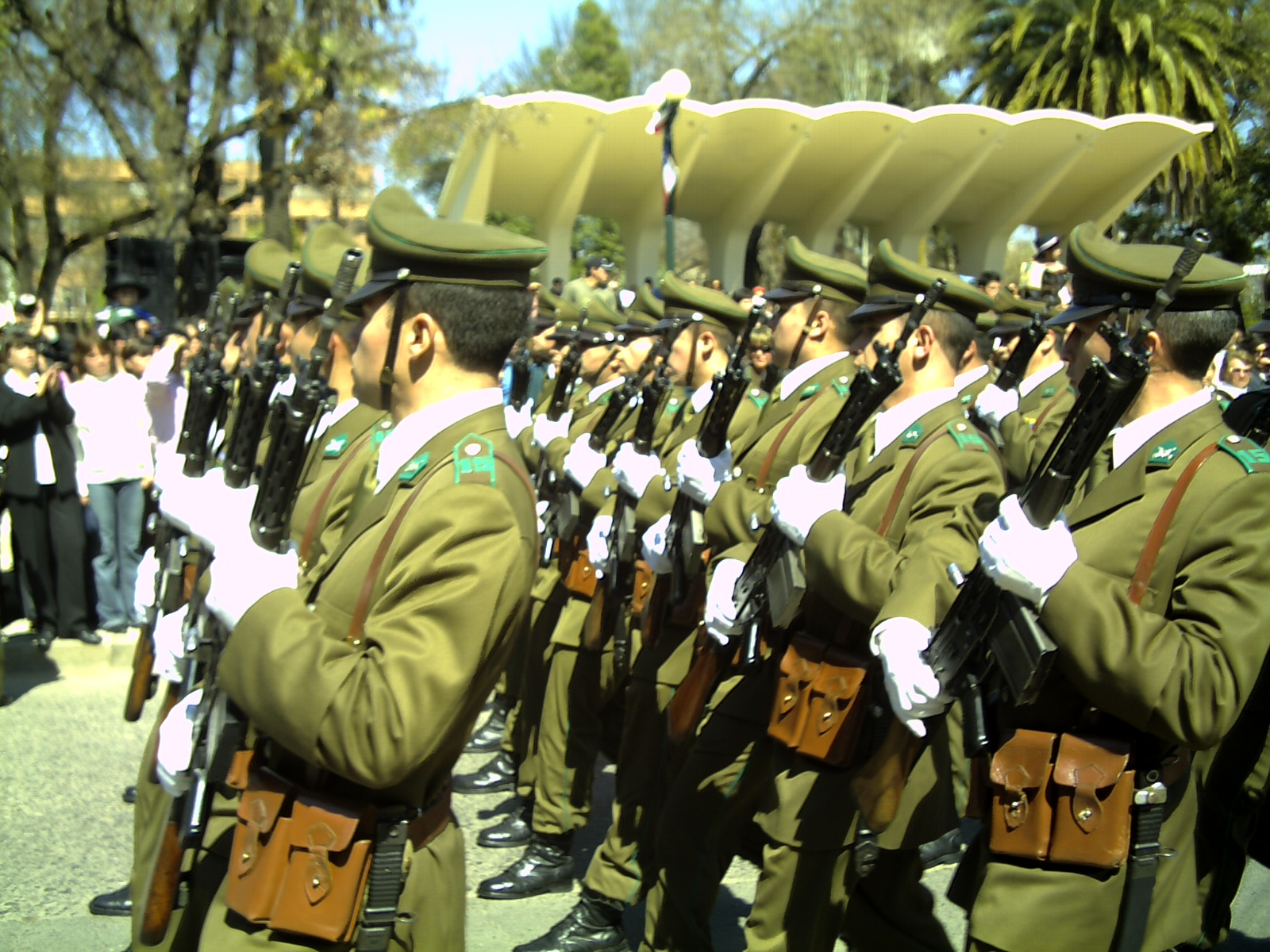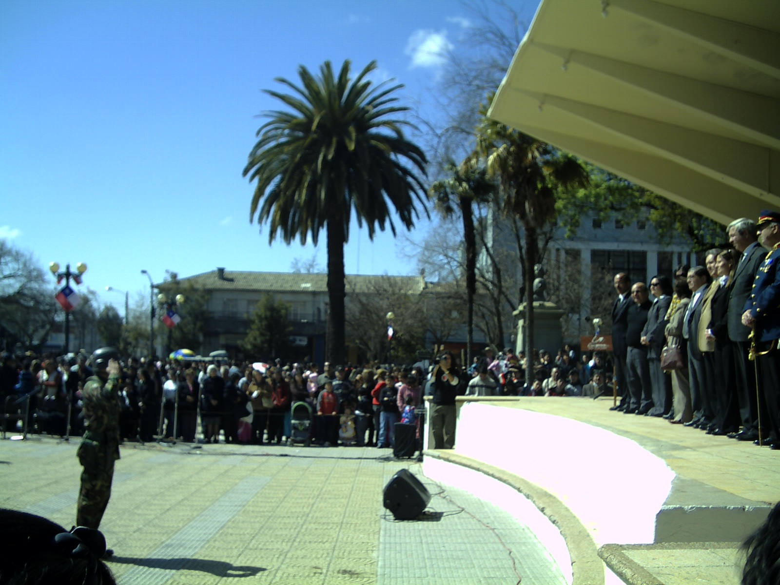 Uno de los momentos más emotivos y aplaudidos por la gente fue la marcha de los soldados del Regimiento Chacabuco de Concepción, conformado por conscriptos de nuestra zona y que una vez finalizado el desfile pudieron reunirse con sus familias en las dependencias del ex regimiento Andalién.Quienes también estuvieron presentes fueron los Huasos de Cauquenes que junto a sus caballos pusieron el tinte criollo a la celebración. Hasta aquí parecía que el evento se daba por finalizado, sin embargo, venía la sorpresa mayor.