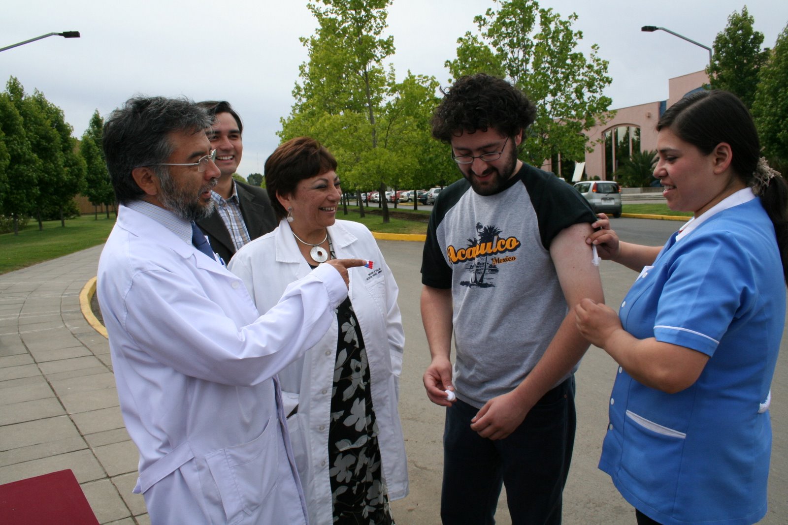 Instalados a la entrada principal de la Universidad los directivos presenciaron la vacunación de uno de los estudiantes que representaba a los 10 mil jóvenes maulinos que aun no se han vacunado contra esta enfermedad.