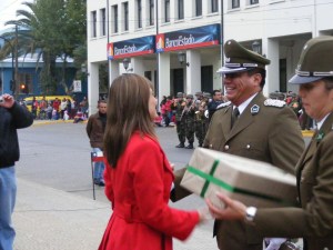 El acto contó además con el tradicional desfile que consideró un destacamento de honor y delegaciones de estudiantes de los distintos Establecimientos Educacionales de la comuna de Cauquenes quienes desfilaron a los sones de la Banda de Guerra de la Escuela de Artillería.
