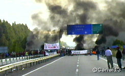 Los manifestantes, provenientes de diferentes sectores costeros de la región del Maule, protagonizaron un primer enfrentamiento con carabineros en el camino que une Constitución y San Javier, donde fue incautado un camión cargado con neumáticos destinados a barricadas.