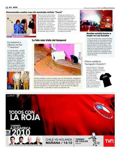 La fotografía fue subida a internet el lunes 19 de mayo por los servicios informativos compartidos de la web de Radio Red Géminis y Cauquenes.tk, de hecho, fue en este último sitio donde una periodista del diario de circulación nacional, Luciana Lechuga, observó la imagen y determinó que era justo el elemento que necesitaba para completar la plana seis del tabloide.