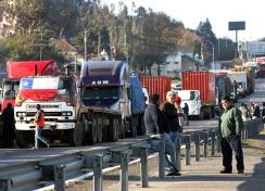 Carabineros informó que en el sector de Bobadilla, ruta 5 sur, proximidades de San Javier, los camioneros se mantienen en la berma como ha sido la tónica hasta ahora y el tránsito es normal por una sola pista.