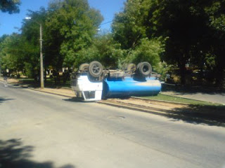 Aproximadamente a las 11 de la mañana con 15 minutos del lunes 12 de enero, el camión aljibe patente GF 79 80, conducido por Germán Llanos Valenzuela, sufrió un corte de frenos en la intersección de calle O’Higgins con Montt.