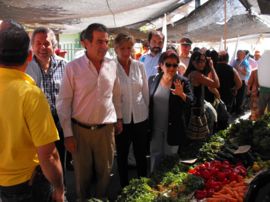 Mientras Martita Larraechea acaparó por momento la mayor atención de quienes saludaban a la comitiva, Frei se preocupó de saludar a la gente de la tercera edad y las personas que compraban las verduras y frutas en el lugar.