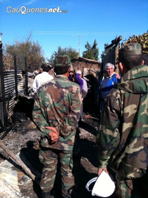 Las casas de emergencias fueron construidas por personal del ejército que se encuentra colaborando en el armado de mediaguas en Cauquenes, quienes hicieron un paro en sus funciones para ir en ayuda de esta familia, doblemente afectada.
