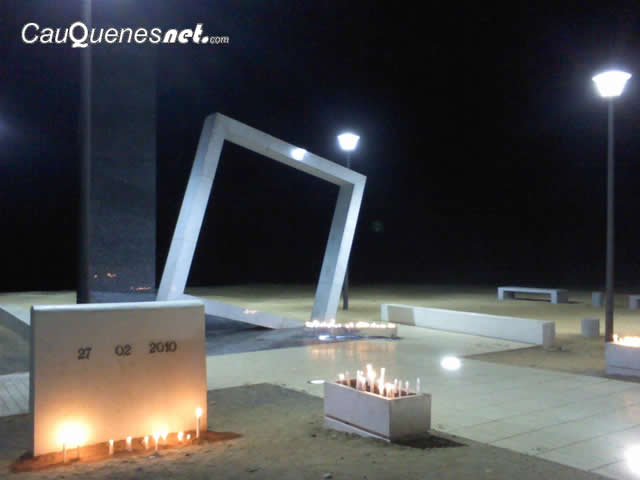 Mientras se acercaba la hora en que -hace un año atrás- ocurrió el terremoto de 8,8 grados Richter, los Bomberos de Cauquenes expusieron a la comunidad una serie de ejercicios de rescate, en los cuales se han estado capacitando para enfrentar situaciones de crisis. Finalizada la actividad de los voluntarios locales, comenzó un acto artístico-cultural en donde la música y la poesía continuó rindiendo homenaje a las víctimas.Cerca de las 3:15 de la madrugada comenzó la liturgia del fuego, mientras tanto se confeccionaba una gran bandera chilena con flores que los asistentes al acto fueron colocando en un panel. A las 3 de la madrugada con 34 minutos, momento exacto en que se conmemoraba el primer aniversario de la tragedia, la emoción y el recuerdo se hizo evidente.