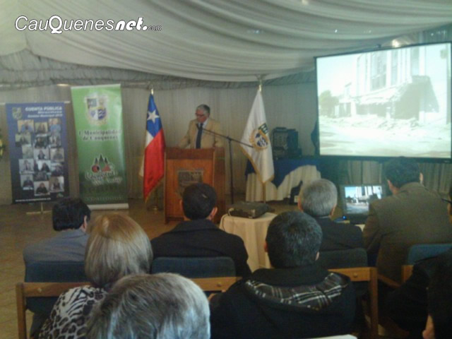 “Al rendir la Cuenta Pública de la gestión edilicia correspondiente al año 2010, lo hago con el mayor de los orgullos por los objetivos que nos planteamos, levantar nuestra comuna, su infraestructura y su alma, tras la catástrofe sufrida. Hemos logrado, como equipo municipal, profundizar estas políticas de desarrollo comunitario, y sobre todo ahondar en los aspectos sociales. Este panorama nos da las fuerzas, para demostrar que podemos hacer de nuestro querido Cauquenes uno más hermoso e importante, trabajando con más ganas y fuerzas”, aseguró.