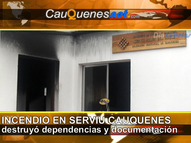 Un incendio destruyó esta madrugada las instalaciones del Servicio de Vivienda y Urbanismo (Serviu) de Cauquenes, ubicado en calle Yungay entre Catedral y Claudina Urrutia.De acuerdo a informaciones recogidas en el sitio del suceso, el incendio se habría iniciado en la oficina del delegado provincial de la repartición, Rodrigo Orellana, quien señaló que las pérdidas son millonarias en cuanto a implementación. «Hay daño en la estructura, pintura, mobiliario y la techumbre del edificio», acotó.