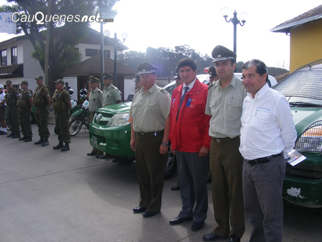 Finalmente las autoridades se trasladaron al exterior del edificio municipal, lugar donde se ubicaba el personal y vehículos con que contarán tanto Carabineros como la PDI, destacando vehículos todo terreno, bicicletas, furgones, policía montada y cuartel móvil entre otros.