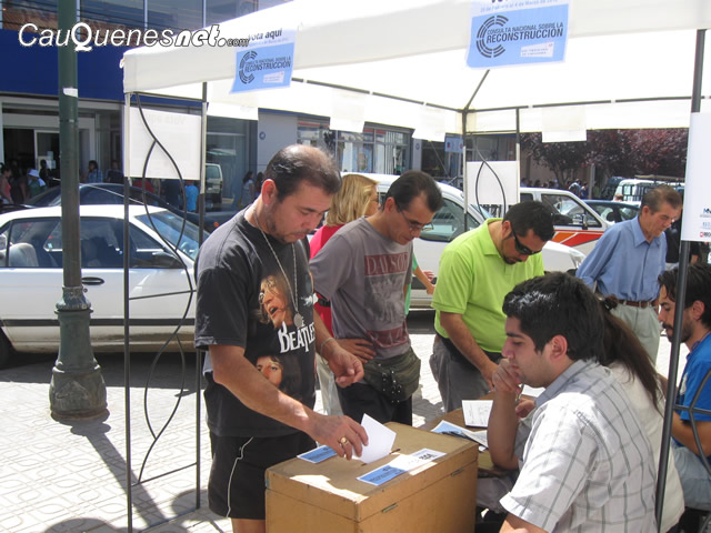 Por su parte, en Cauquenes fueron instadas 03 de mesas de votación, a saber: el lunes 27 de febrero en el Barrio Estación, el viernes 02 de marzo en Población Cauquenes y el sábado 03 en el centro de la ciudad, donde participaron casi 500 cauqueninos aportando su opinión al proceso evaluado. “Estamos conformes con la participación en nuestra comuna”, dijo Angelo Fuentealba, Vocero de la Red de Organizaciones Pro Reconstrucción; “en el proceso de reconstrucción, la ciudadanía debe jugar un rol fundamental, por eso queremos visibilizar su percepción y su experiencia sobre el Plan de Reconstrucción con el único propósito de aportar una opinión para mejorarlo y hacerlo más eficiente”, agregó el dirigente cauquenino.
