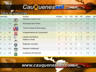 De esta forma queda en el cuarto puesto de la tabla de la Zona Sur , con cuatro puntos, avanzando dos lugares en la tabla y quedando bajo el cuadro Tomás Greig de Rancagua, sólo por la diferencia de goles (-2).