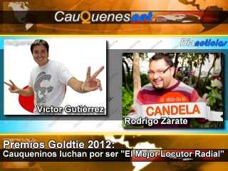Recuerde entonces, vote por los cauqueninos en los Premios Juveniles Goldtie 2012. Elija como la Mejor Radio Regional a la Red Géminis de Cauquenes, y como mejor locutor radial vote por Rodrigo «Candela» Zárate o por Vitoco «Mix» Gutiérrez.