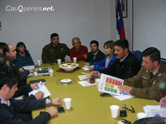 En el COE realizado en la Gobernación participaron Vialidad, Educación, Carabineros, PDI, Bomberos, Municipalidades, Emelectric, Seremi de Salud, Hospitales de Cauquenes y Chanco, Gendarmería y la Gobernación entre otros.