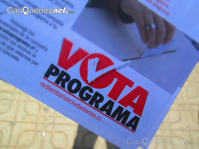 En pleno centro de la ciudad, la mañana del pasado sábado 08 de septiembre, la Red Ciudadana de Cauquenes realizó el lanzamiento local de la campaña “Vota Programa” de la Red Nacional de Territorios Ciudadanos, que busca que los candidatos a Alcalde presenten programas de gobierno comunal medibles por los ciudadanos, una vez electo.