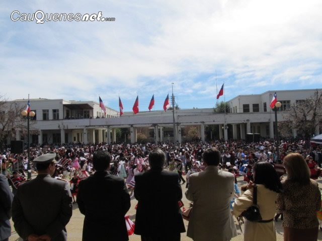Posteriormente, se realizó el tradicional acto y posterior desfile en la Plaza de Armas, el que contó con la participación de todos los establecimientos educacionales de Cauquenes, a los que se sumaron otras entidades, entre las que destacaron las fuerzas de orden y seguridad.