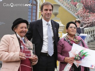En una de las terrazas del cerro Santa Lucia en pleno centro de Santiago, el Ministro de Cultura, Luciano Cruz-Coke, encabezó esta mañana la ceremonia de reconocimiento público a los nuevos Tesoros Humanos Vivos del país, cultores de tradiciones de los más diversos rincones. Hasta el lugar llegaron las artesanas Dilia Lara y Delfina Aguilera de la comunidad de Loceras de Pilén (Cauquenes), a recibir el reconocimiento de manos del secretario de Estado.