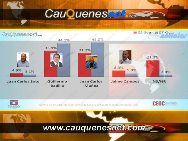 La segunda entrega de la encuesta realizada por el Centro de Opinión Ciudadana (CEOC) de la Universidad de Talca, pretendía ser un predictor de lo que ocurrirá en las próximas elecciones en Cauquenes. Sin embargo, lo único que dejó claro es el estrecho escenario político comunal entre el Gobierno y la Concertación, consolidando las candidaturas de ambos bloques, las que crecen respecto a la aplicación anterior del estudio.