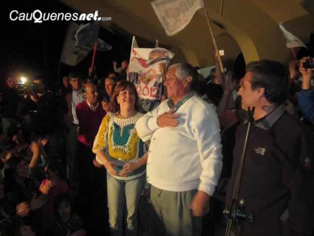 Cientos de adherentes llegaron hasta el centro de la ciudad para celebrar la nueva victoria del actual edil, el que permanecerá al frente del municipio local por cuatro años más, periodo en el cual pretende llevar a cabo promesas -que producto del terremoto de 2010- no pudo cumplir en su actual periodo.