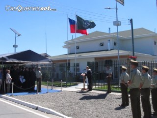 En el frontis de las nuevas instalaciones se realizó el acto de inauguración del nuevo reten de Quella, localidad rural de la comuna de Cauquenes ubicada a unos 25 km de la capital provincial y donde desde 1937 ha existido un centro policial y ahora le tocó el turno de su remodelación.