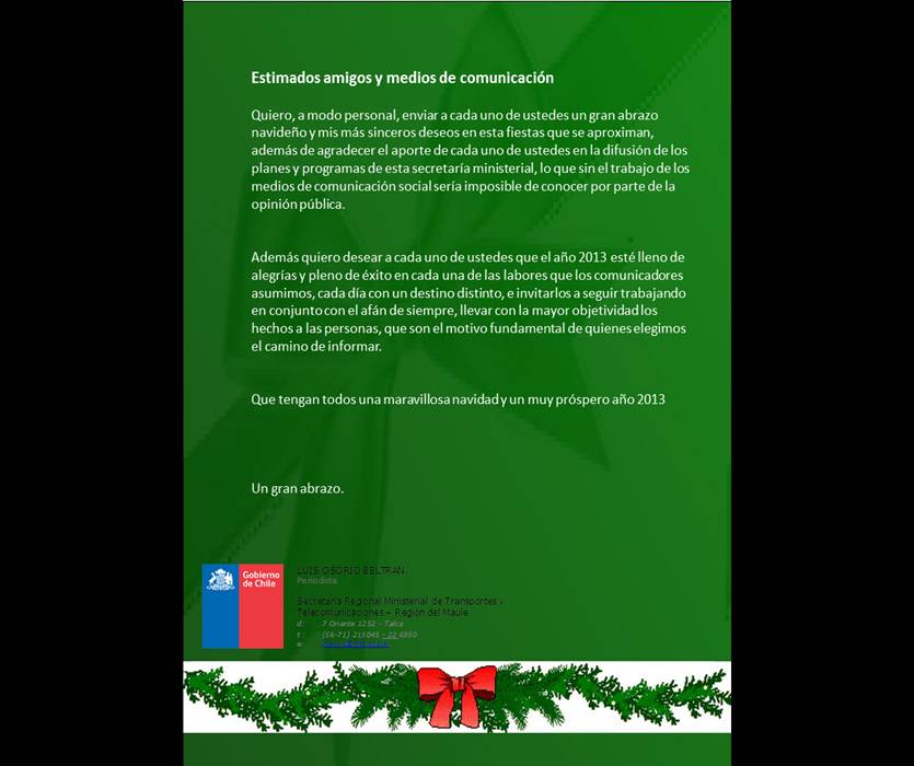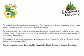 Ni las teorías del fin del mundo ni el mal tiempo reinan te en la zona durante toda la jornada del 24 que registró lluvias y fuertes vientos en algunos sectores de la Provincia de Cauquenes, pudieron opacar esta jornada navideña, fecha de unión familiar y alegría -sobre todo. para los más pequeños de la casa.