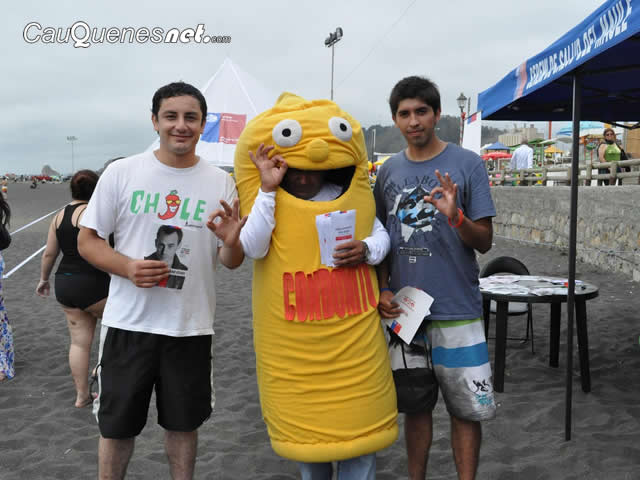 El programa se inició en Constitución, luego se trasladó a Iloca y el domingo 27 de enero se visitó Pelluhue. En todas las playas los veraneantes aceptaron felices la invitación a jugar, concursar y a recibir material informativo. Mientras, los niños y sus papás bailaban y eran parte de los juegos junto a la mascota “Vitalito”, los jóvenes recibían con ansias la consejería y los preservativos que repartía nuestro amigo “Condonito”. Cada actividad finalizó con aerobox y entrega de diversos regalos.