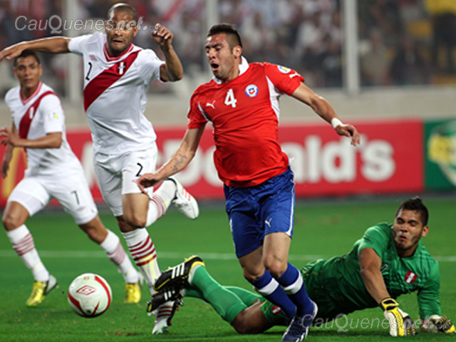El combinado nacional controló el primer lapso. Tuvo algunos problemas al inicio, pero los subsanó instalándose más arriba y recuperando el balón en campo peruano. Fue el mejor momento de la ‘Roja’, con dos balones sacados de la línea por la defensa local y una clara falta dentro del área no cobrada del portero Fernández a Mauricio Isla.