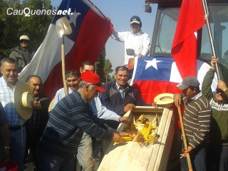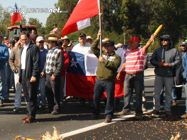 Sacando sus tractores a la Ruta 5 Sur a la altura de Achibueno, portando banderas chilenas y un ataúd repleto de choclos salieron los maiceros de la región para protestar por la poca protección que reciben ante la dura competencia internacional. Los productores recibieron el apoyo de los parlamentarios de la zona.