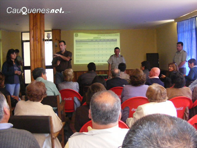 La Cuarta Comisaría de Carabineros de la ciudad de Cauquenes fue el lugar escogido para que funcionarios del Servicio Agrícola y Ganadero, SAG, en conjunto con el gobernador provincial, Guillermo García, el consejero regional, Ricardo Pérez, representantes de la intendencia regional y de la federación de agricultores, sostuvieran una reunión de información y coordinación con la totalidad de los presidentes de juntas de vecinos urbanas y rurales de la zona a fin de establecer una política en conjunto para prevención del delito de abigeato o robo de animales.