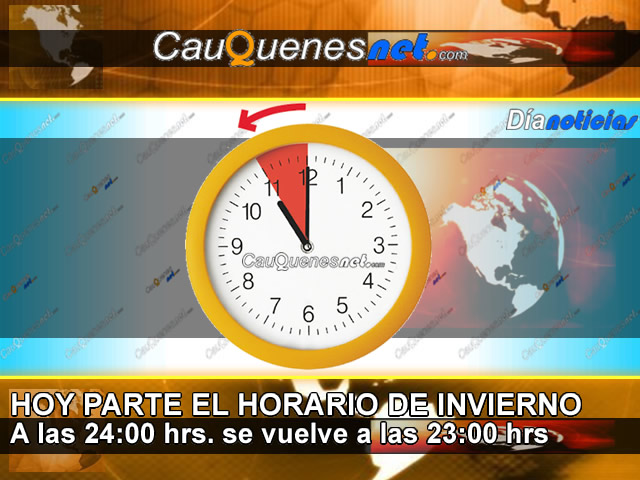 El horario de invierno entrará en vigencia la medianoche de hoy sábado 27 de abril. Este día, los relojes deberán retrasarse en 60 minutos, esto es, siendo las 23:59 horas con 59 segundos, en vez de pasar a las 0:00 horas, deberá ajustarse la hora para que sean las 23:00 horas del mismo día.