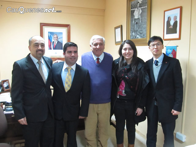 Hasta las dependencias del alcalde, Juan Carlos Muñoz, llegó el representante de LG en Chile, Gunhwan Son, el encargado de proyectos de la empresa koreana, José Miguel Lira, Carolina inostroza, técnico encargada del proyecto en Cauquenes y Roldan Díaz, Director de Aire Acondicionado y Energía de LG.
