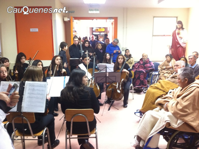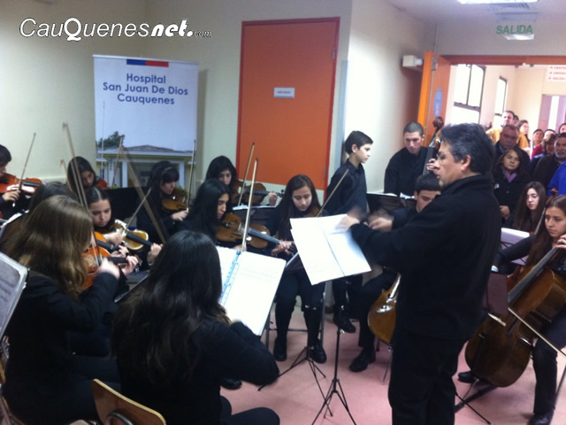 A partir de las 11 de la mañana del pasado viernes, el movimiento en los pasillos del Hospital San Juan de Dios de Cauquenes, anunciaba que sería un día diferente a otros. Las enfermeras trasladaron a los pacientes a la sala de espera, quienes fueron recibidos por los niños de la Orquesta Infanto Juvenil de Cauquenes.