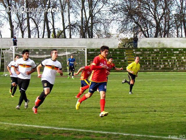 Remates, desbordes y arrestos individuales eran las armas a utilizar por los cauqueninos para vencer el cerrojo blanco. Corría el minuto 28 cuando desde la derecha luego de un tiro libre, Adolfo Nuñez recoge un balón suelto en el área y con un remate suave vence la resistencia del meta visitante, desatando la algarabía de los cerca de medio millar de espectadores que llegaron al fiscal.