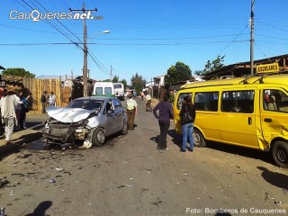 A eso de las 08:30 horas de la mañana de este martes, un furgón escolar Marca Kia patente ZK 56 55, que viajaba con 12 niños a bordo, más el chofer y una «tía», fue impactado por el costado lateral derecho por un vehículo menor guiado por una persona de sexo masculino -marca Chevrolet color gris, placa CY YK 68- que quedó con serios daños y aunque el susto fue grande y las imágenes impactan, no se lamentan desgracias personales.