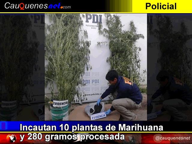 Efectivos de la Policía de Investigaciones (PDI) de Cauquenes en coordinación con el ministerio público detuvieron a dos sujetos mayores de edad -uno de ellos con antecedentes policiales- los que mantenían diez plantas de mariguana de al rededor de dos metros de altura destinadas a la venta del alucinógeno.
