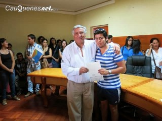 La sala de reuniones de la Municipalidad de Cauquenes estaba abarrotado de estudiantes y de sus familias, que orgullosos asistieron a la ceremonia que se preparó para hacer entrega de los cheques que les permitirá cancelar sus matriculas de estudios superiores.
