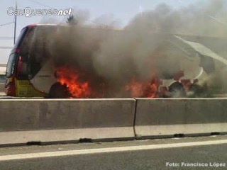 Un colchón arrjado en el camino, habría sido lam causa del incidente que podría haber costado la vida de los ocupantes del bus, sin embargo, todos alcanzaron a evacuar la máquina.