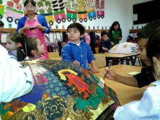 La obra se inició con un trabajo grupal en el que cada Niño y Niña expresó a través de la pintura sentimientos, emociones y su forma de apreciar el entorno cercano, de esta forma el soporte utilizado fue un objeto de uso cotidiano -como lo es el paraguas- para permitirles explorar su creatividad.