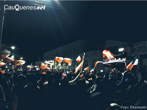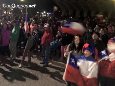 | Con banderas chilenas cauqueninos celebraron en plena Plaza de Armas. |