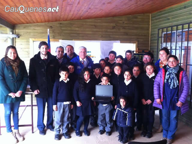 Hasta la escuela de la localidad rural de Cabrería, distante a unos 30 minutos de Cauquenes, llegó el alcalde, Juan Carlos Muñoz, el jefe DAEM, Felipe Corre y el concejal Luís Mario Vignolo, para entregar 14 computadores portátiles a los alumnos del colegio.