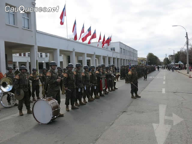 Posteriormente, se ejecutó el tradicional acto y posterior desfile en la Plaza de Armas, el que contó con la participación de todos los establecimientos educacionales de Cauquenes, a los que se sumaron otras entidades, entre las que destacaron las fuerzas de orden y seguridad.