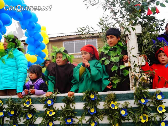 Los 8 carros que representaban a Liceo Pelluhue; Escuela Gladys Canales Paredes, de Curanipe; Escuela Blanca Bustos Castillo, de Chovellén; Escuela José Juvenal Mancilla Concha, de Quilicura; Escuela San Alfonso, de Canelillo; Junta de Vecinos Nº 1 de Pelluhue; Club Adulto Mayor El Porvenir; y el carro correspondiente a la Asociación de Funcionarios Municipales de Pelluhue, que transportó la Batucada que amenizó todo el recorrido.