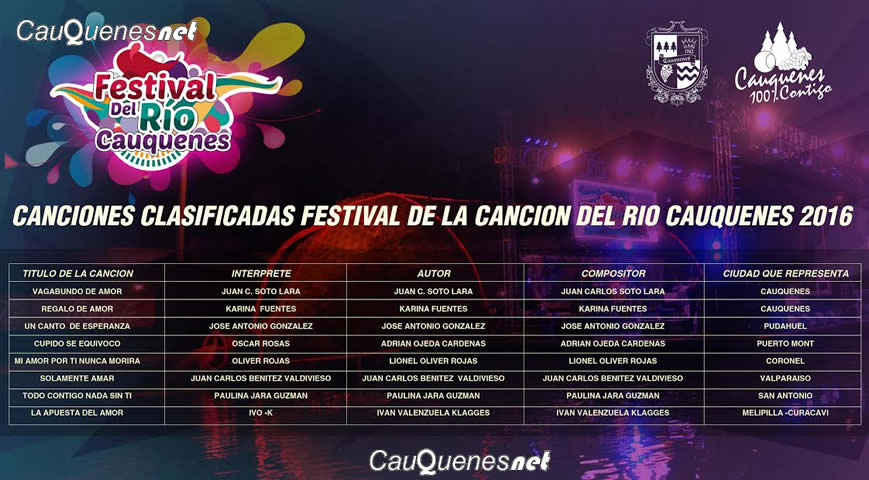 Una ardua selección fue la que realizaron en la Municipalidad de Cauquenes para dejar a los ocho temas en competencia para el Festival del Río 2016, que se realizará el 26 y 27 de febrero.