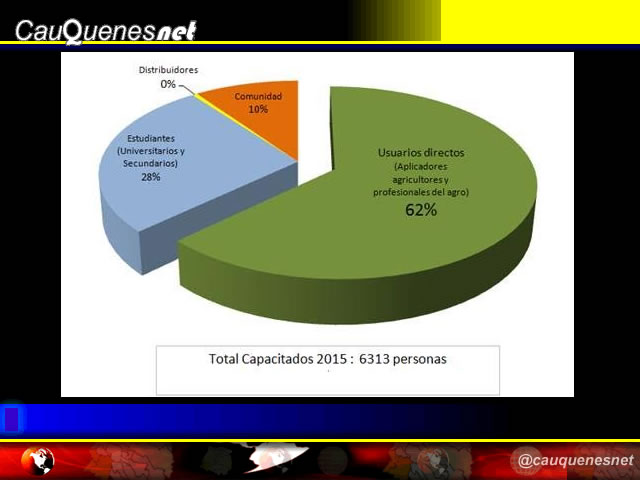 Dicha actividad se extendió a lo largo de todo el país, con énfasis en la zona agrícola comprendida entre las regiones de Arica y Los Lagos, donde destacan las capacitaciones de las regiones Metropolitana, O’Higgins y El Maule.
