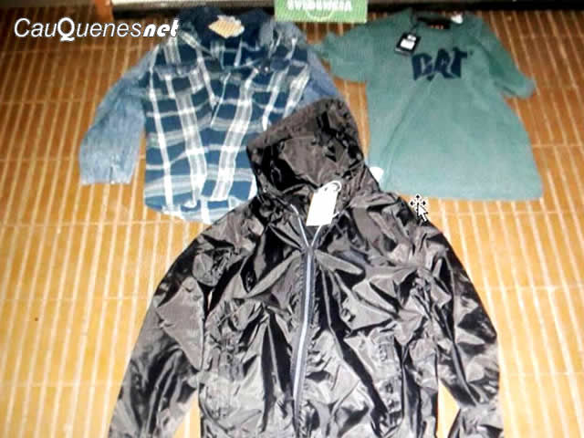 Según se dio a conocer entre la ropa sustraída por los delincuentes se encontraba una polera marca CAT, además de una camisa y un cortaviento marca FCC, todas las prendas con el logo de la tienda, el precio y hasta los sensores de seguridad. Los artículos eran mantenidos al interior de un automóvil marca Chevrolet modelo 04 Cruza NB.