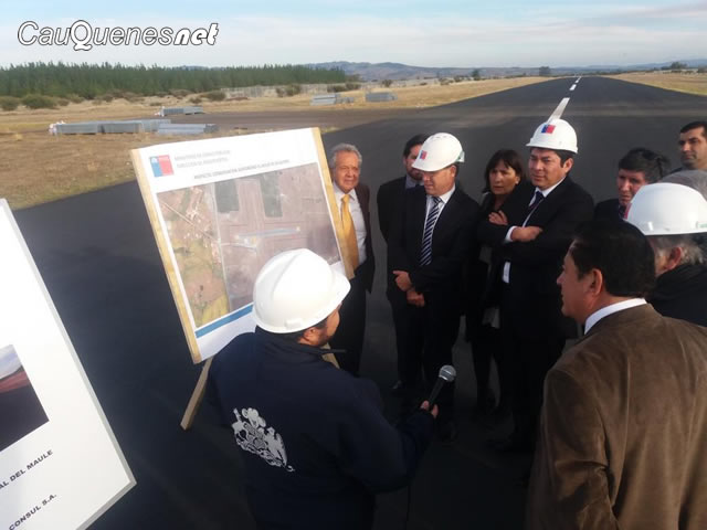 El Ministro de Obras Públicas, Alberto Undurraga, junto al Intendente del Maule, Pablo Meza Donoso y el Gobernador Gerardo Villagra Morales, encabezaron una visita inspectiva a las faenas de conservación del aeródromo El Boldo de Cauquenes.