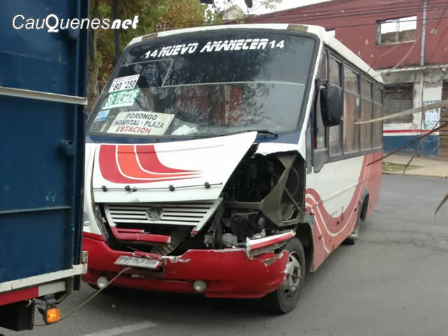 Pasadas las 12:30 horas de hoy, una micro de transporte público de la empresa Nuevo Amanecer colisionó con una camioneta en pleno centro de Cauquenes. El hecho tuvo lugar en calle Victoria esquina Carrera Pinto. Aunque se pudo tratar de un accidente de proporciones mayores, felizmente no hubo personas lesionadas. Se desconocen las causas del hecho.