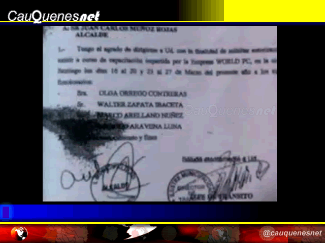 Se han conocido más antecedente sobre el fraude que se habría cometido en el Departamento de Tránsito de la Municipalidad de Cauquenes con la venta de permisos de circulación de manera fraudulenta. La excusa para viajar a Santiago era ir a cursos de capacitación impartidos por la empresa «WORLD PC», solicitud que era aprobada por el propio alcalde, sin embargo, el verdadero motivo del viaje era la venta de los cuestionados permisos.