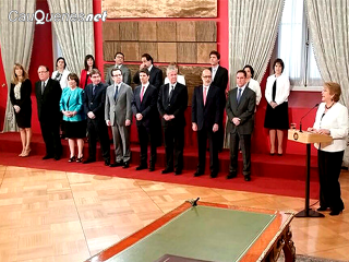 En virtud de sus atribuciones, la Presidenta de la República, Michelle Bachelet, aceptó la renuncia de los ministros de la Secretaría General de Gobierno, Marcelo Díaz; del Trabajo y Previsión Social, Ximena Rincón; y del Deporte, Natalia Riffo, agradeciendo a cada uno de ellos el trabajo realizado durante su ejercicio en el cargo.
