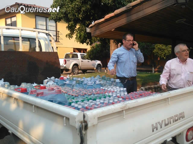 Cientos de bebidas isotónicas, botellas con agua mineral, barras de cereal y bidones con el vital elemento fueron otorgados para paliar las necesidades más urgentes de quienes hoy por hoy brindan su mayor esfuerzo y dedicación para erradicar el fuego en la zona central de nuestro país