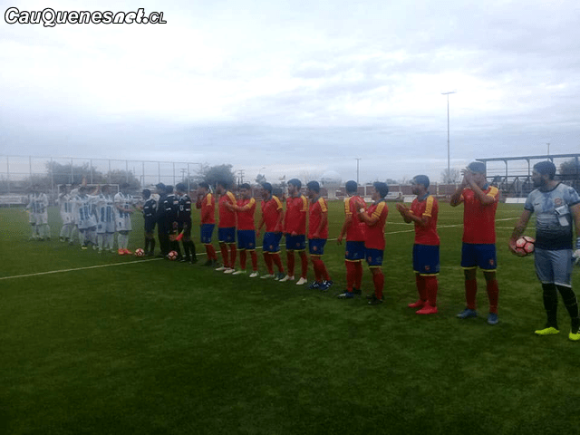 Ya desde los primeros minutos del encuentro Los Rojos lograron mostrar su dominio en el juego, con varias llegadas al arco contrario, pero no fue -si no- hasta el minuto 14, cuando el argentino Marcos Benavidez -de cabeza- logra batir las redes rivales y anota el 1-0 para los de Cauquenes.